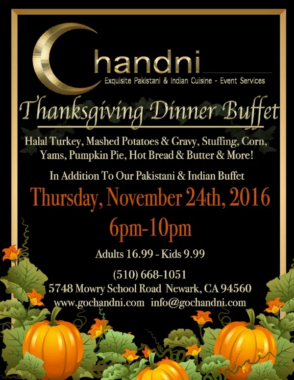 Join us for Chandni's annual Thanksgiving feast this year on Thursday, November 23, 2017.